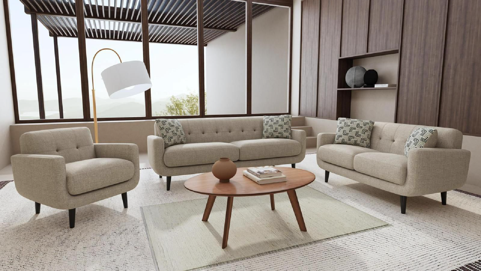 Perfecto para salas medianas y grandes, este set es una excelente elección para quienes buscan funcionalidad sin sacrificar estilo.